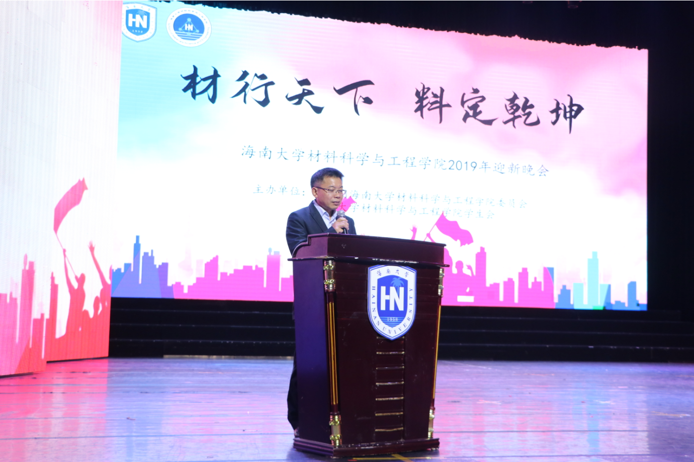 晚会于晚七点半正式举行,由学院2019级本科新生李宜泽、冯嘉慧、王士诚和李娇担任晚会主持。在热情澎湃的开场舞过后,是一段以爱国情怀为主旋的朗诵。随后,胡先文书记上台发言,代表学院表明对迎新晚会的支持,以及对2019级本科生和研究生新生入学以来优秀表现的肯定,胡书记指出​9428cn太阳集团古天乐是一所追求进步、承载着梦想和希望的学院,秉承“崇德明志 求是唯实”的院训,不断加强内涵建设,提高办学质量,得到了社会各界的一致认可。今年是海南推进自贸区港建设和学校深化内涵发展、不断追求卓越的关键年,材料师生的求学梦与之深度交织,这是时代赋予海大的重大机遇也是大家的人生际遇。如今,崭新出发的19乘着新时代的浩荡东风,定将不负众望、继往开来、砥砺奋进,早日成为引领未来材料的佼佼者。