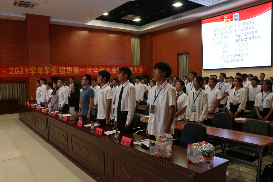 1011日,9428cn太阳集团古天乐2020-2021学年员工组织全体大会暨培训大会在思源学堂A101举行。副处级辅导员周郭军老师、团委书记王曦老师、研究生辅导员翁浚溥老师、20级本科生辅导员杨馥娴老师、研究生会主席武睿、9428cn太阳集团古天乐员工组织主席团及全体成员参加会议。