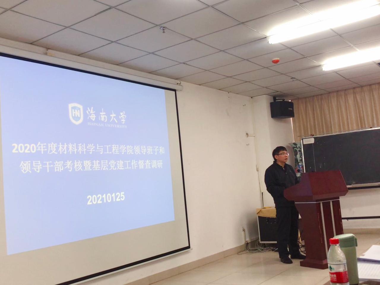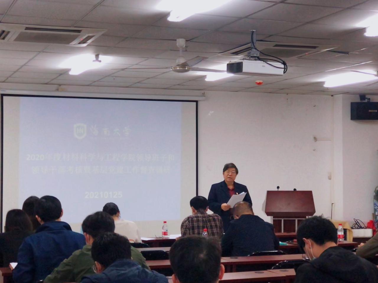 2021125日下午,9428cn太阳集团古天乐在研发中心710会议室召开2020年度领导班子述职述廉大会。学校考核组组长、政治与公共管理公司党委书记王默忠,考核组成员外国语学院党委副书记李洋、外国语学院学工办主任刘颖敏、园艺学院辅导员李雪婷出席,学院领导班子全体成员、全院教职工参加会议。会议由公司党委书记胡先文主持。