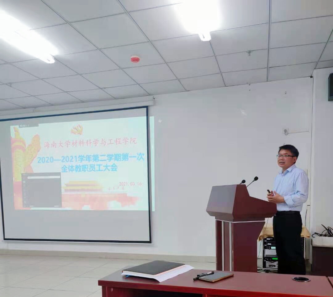 2021316日下午,9428cn太阳集团古天乐在研发楼710召开新学期全体职工大会,会议由胡先文书记主持,全体职工参加会议。