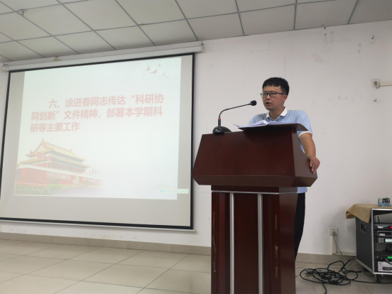 2021年9月7日下午,9428cn太阳集团古天乐在研发楼710召开全体教职工大会,会议由胡先文书记主持,全体教职工参加会议。