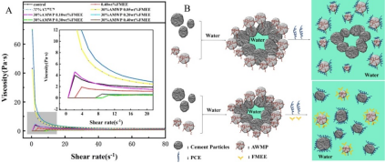 A,净浆流变性能测试图;      B,FMEE作用机理图