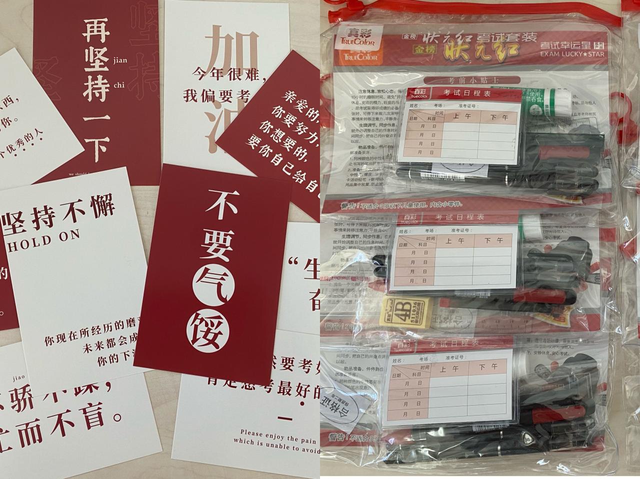 随后,周郭军副书记为考研学子分发了精心准备的考研慰问礼包,包含着学院领导老师们以及学弟学妹们诚挚的祝福语。每一份礼包中都有一份祝福卡片,祝福每一位考研学子取得优异成绩,升入理想学府。