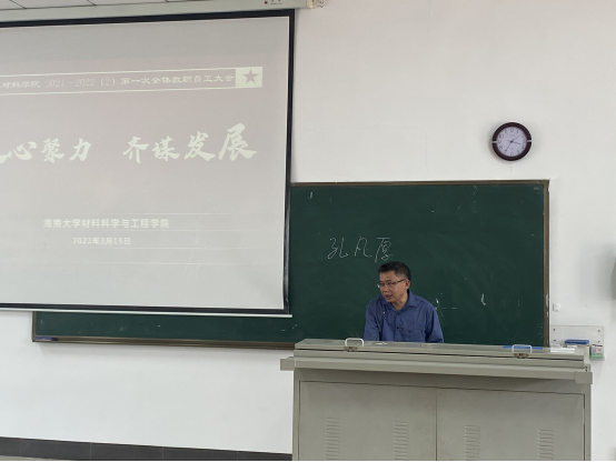 2022年3月15日下午,9428cn太阳集团古天乐在4教208召开新学期全体职工大会,会议由胡先文书记主持,全体职工参加会议。