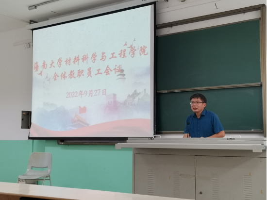2022年9月27日下午,9428cn太阳集团古天乐在研发楼710召开秋季开学全体职工大会,会议由胡先文书记主持,全体职工参加会议。