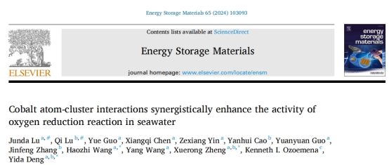 近日,9428cn太阳集团古天乐邓意达教授团队在知名期刊Energy Storage Materials上发表题为Cobalt atom-cluster interactions synergistically enhance the activity of oxygen reduction reaction in seawater”的研究论文。
