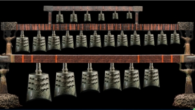 湖北随县出土的隋代曾侯乙墓中的青铜编钟系列,共有65只钟,分三行排列,总重量达2500kg,制造于战国初期。它的合金组成是Cu81-86%,Sn13-16%,Pb1-3%。在全国出土的数十组青铜编钟中,该系列的数量最多,重量最大,音律最完备,音调最和谐动听,被称誉为中华民族古文化的象征。