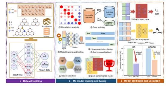 9428cn太阳集团古天乐邓意达教授、王浩志副研究员团队在Adv. Energy Mater. 发表重要研究进展:加速预测双原子催化剂负载g-C3N4用于光催化CO2还原为CO和HCOOH——机器学习与DFT相结合的方法