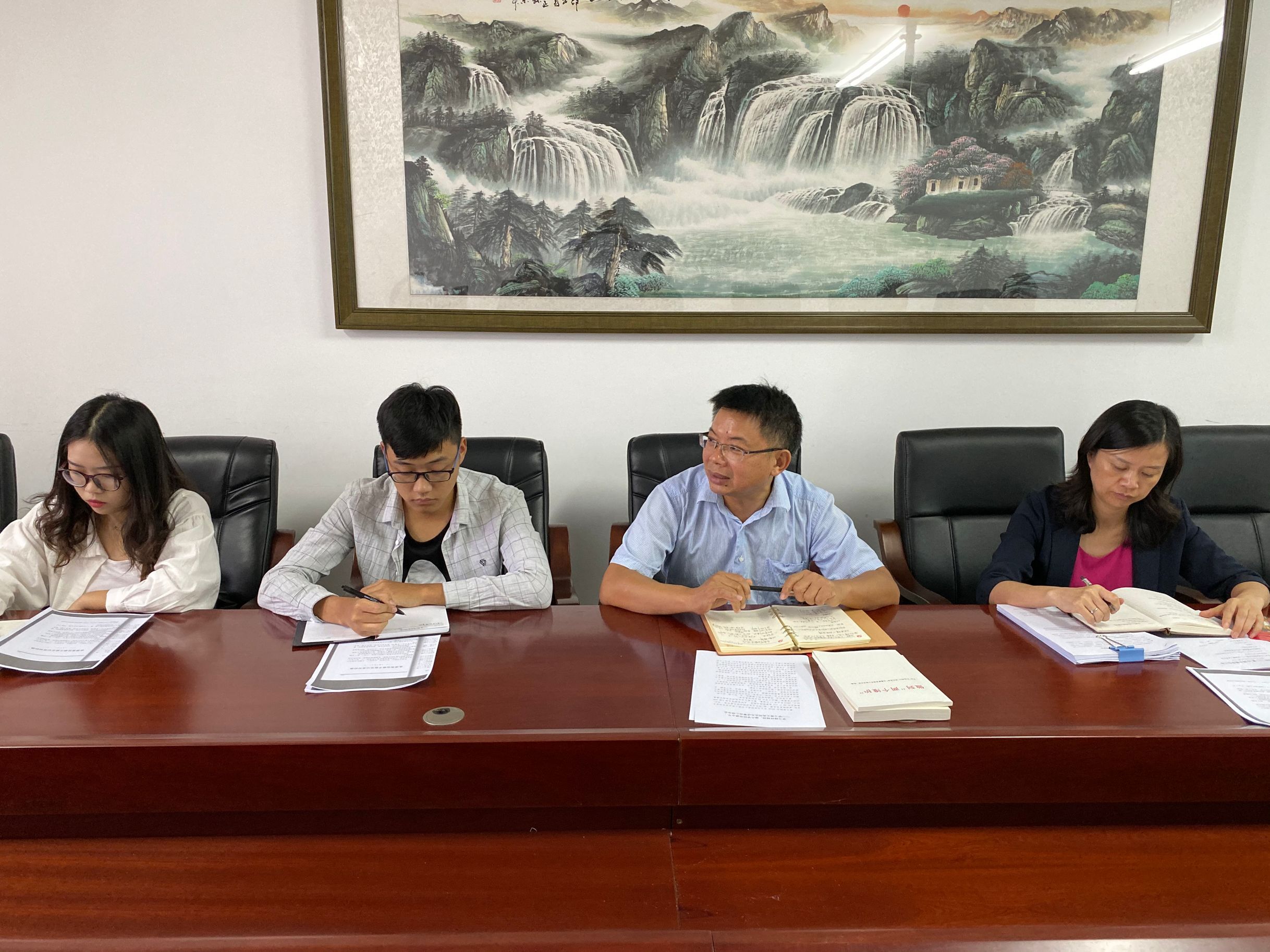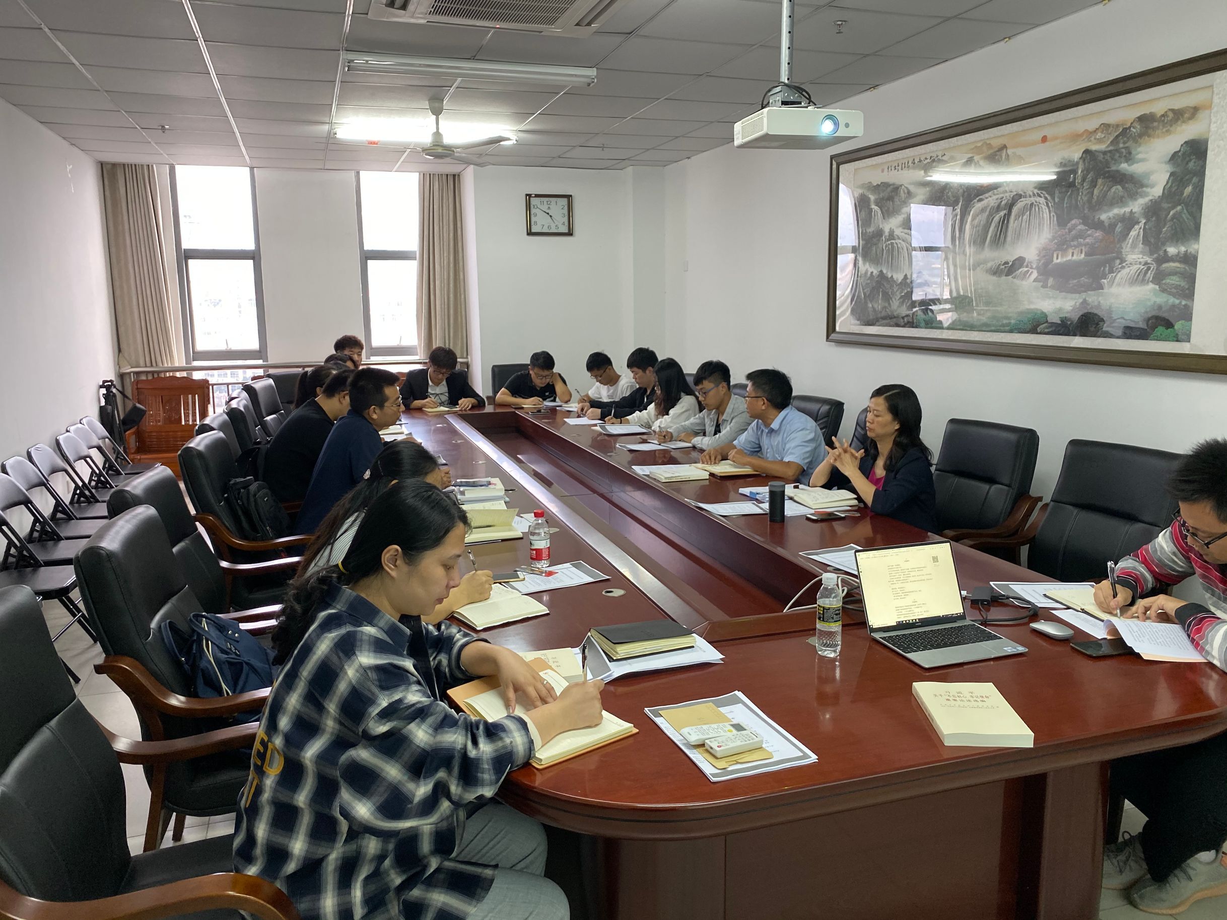 10月29日下午,9428cn太阳集团古天乐主题教育”学院学习研讨会于研发中心717举行。公司党委副书记胡先文、副处级辅导员周郭军、各支部书记及党员代表参加了此次分享会,会议由胡先文副书记主持。