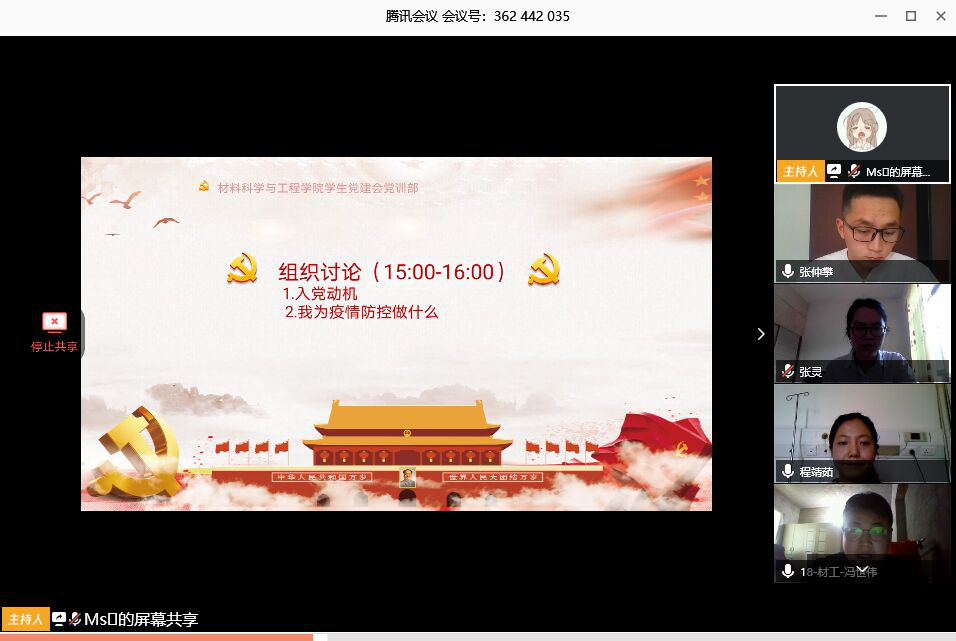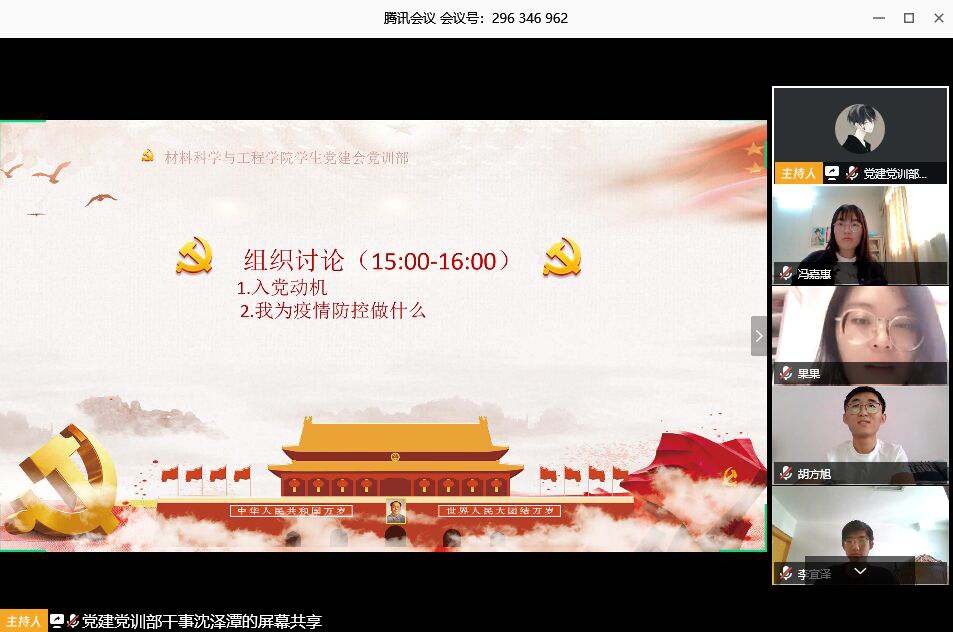 2020年5月5日,9428cn太阳集团古天乐分党校2020年春季发展对象培训班线上组织讨论活动采用视频会议的形式成功召开。