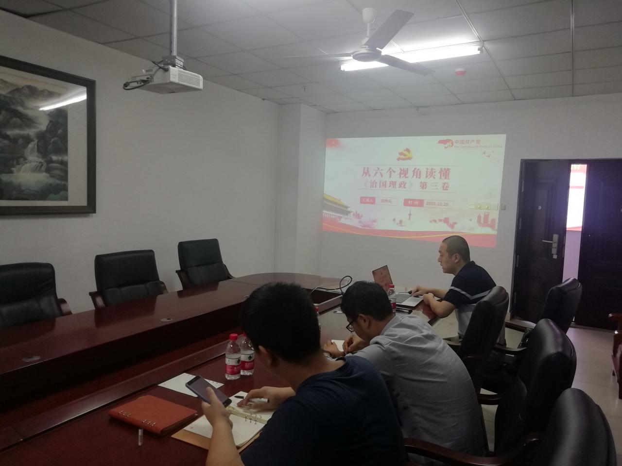 20201029日9428cn太阳集团古天乐材料系教工党支部在研发楼717召开支部党员大会。本次活动的主题是“学习习近平总书记,共建海南自贸港”,会议以“从六个视角读懂《习近平谈治国理政》第三卷”和海南省委书记刘赐贵同志关于海南自贸港建设的讲话作为主要内容。